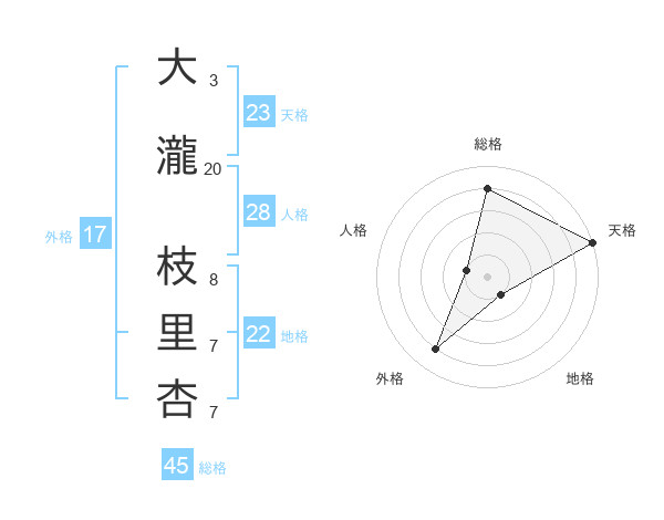 大瀧 枝里杏さんを姓名の画数から五運を鑑定