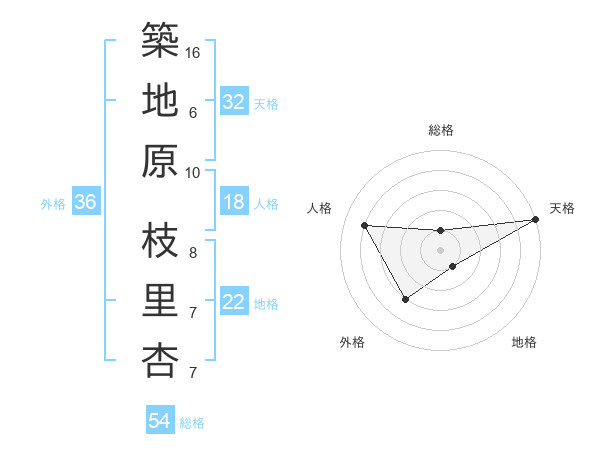 築地原 枝里杏さんの天格は32画の5点!