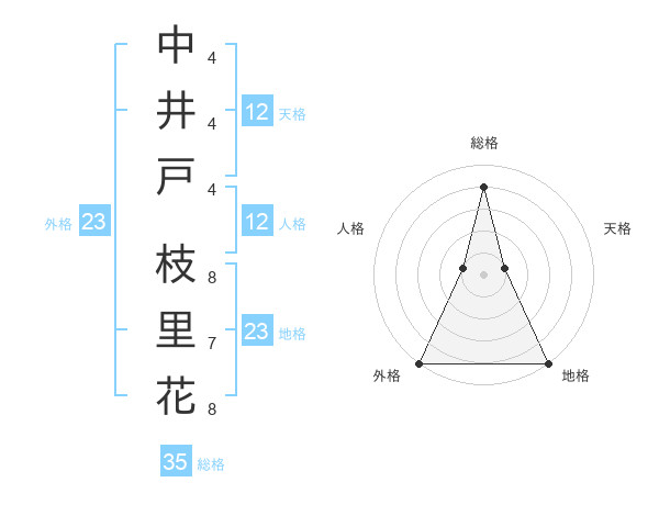 中井戸 枝里花さんの総格は35画の4点