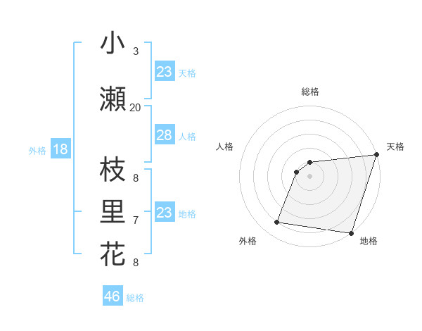 小瀬 枝里花さんの地格は23画の5点!