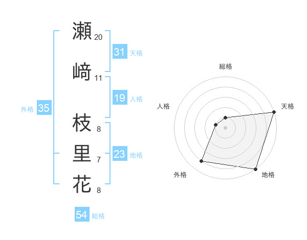 瀬﨑 枝里花さんの総格は54画の1点!