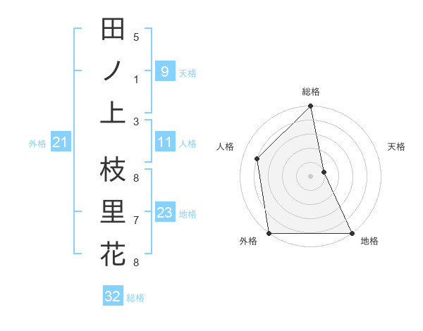 田ノ上 枝里花さんを姓名の画数から五運を鑑定