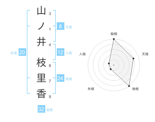 山ノ井 枝里香さんの総格は32画の5点