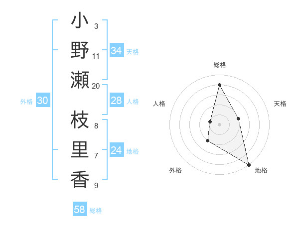 小野瀬 枝里香さんを姓名の画数から五運を鑑定