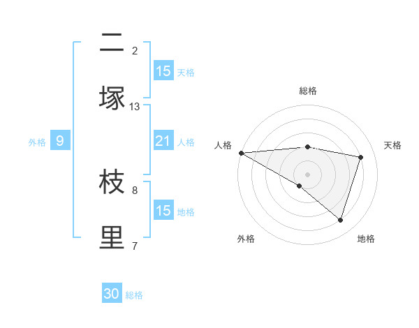 二塚 枝里さんの総格は30画の2点!