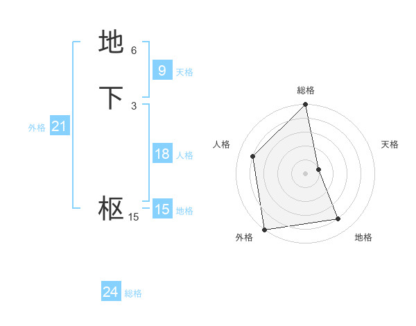 地下 枢さんの外格は21画の5点!