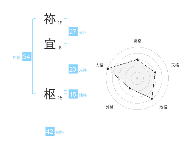 祢宜 枢さんの天格は27画の3点!