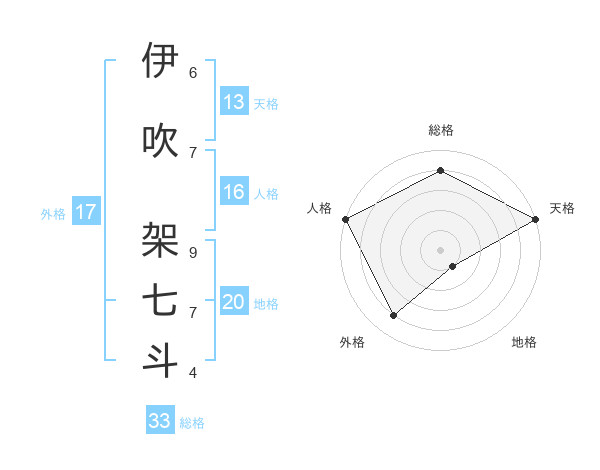 伊吹 架七斗さんを姓名の画数から五運を鑑定
