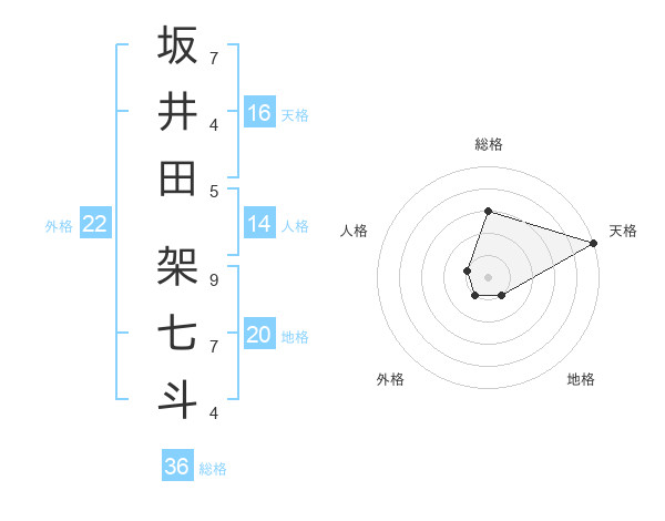 坂井田 架七斗さんを姓名の画数から五運を鑑定