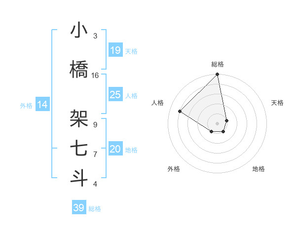 小橋 架七斗さんを姓名の画数から五運を鑑定