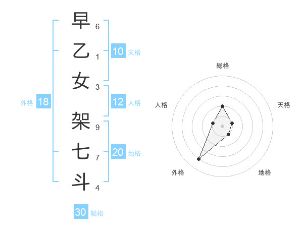 早乙女 架七斗さんを姓名の画数から五運を鑑定