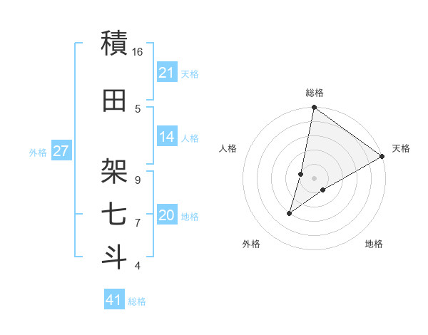積田 架七斗さんの天格は21画の5点!