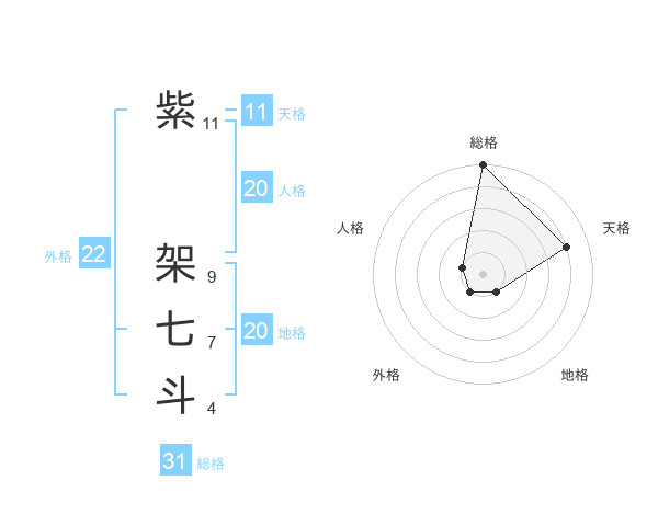 紫 架七斗さんを姓名の画数から五運を鑑定