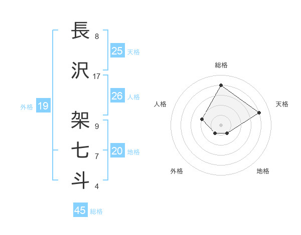 長沢 架七斗さんを姓名の画数から五運を鑑定