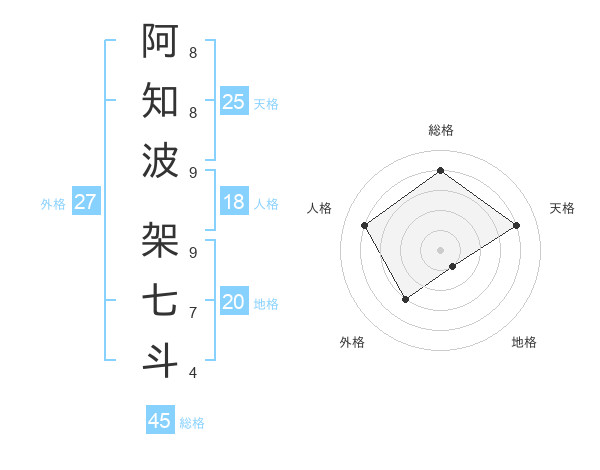 阿知波 架七斗さんを姓名の画数から五運を鑑定