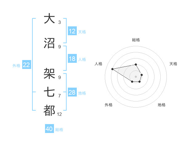 大沼 架七都さんを姓名の画数から五運を鑑定
