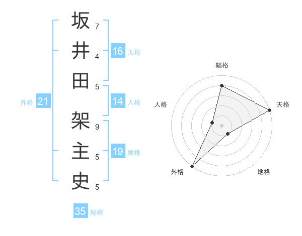 坂井田 架主史さんの総格は35画の4点!
