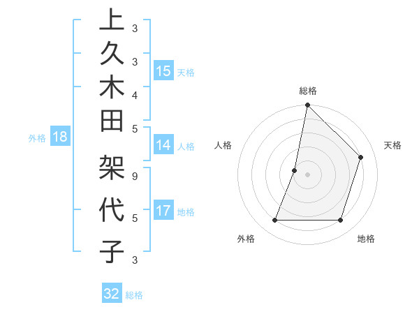 上久木田 架代子さんを姓名の画数から五運を鑑定