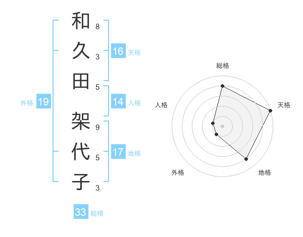 和久田 架代子さんを姓名の画数から五運を鑑定