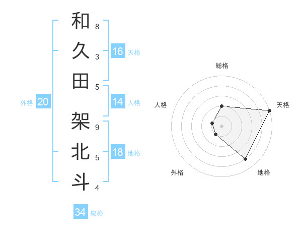 和久田 架北斗さんを姓名の画数から五運を鑑定