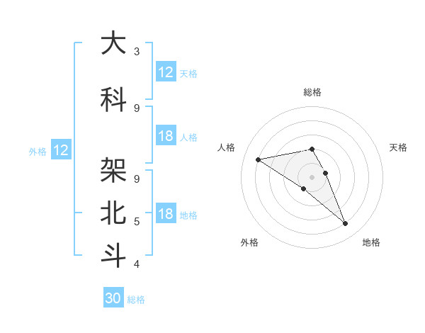 大科 架北斗さんを姓名の画数から五運を鑑定