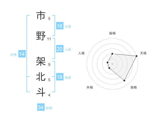市野 架北斗さんを姓名の画数から五運を鑑定