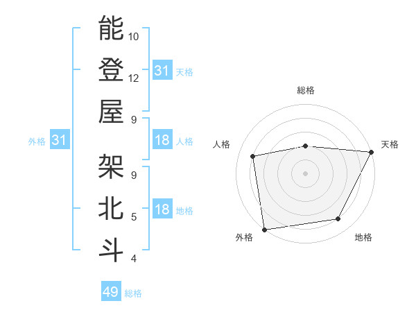 能登屋 架北斗さんを姓名の画数から五運を鑑定