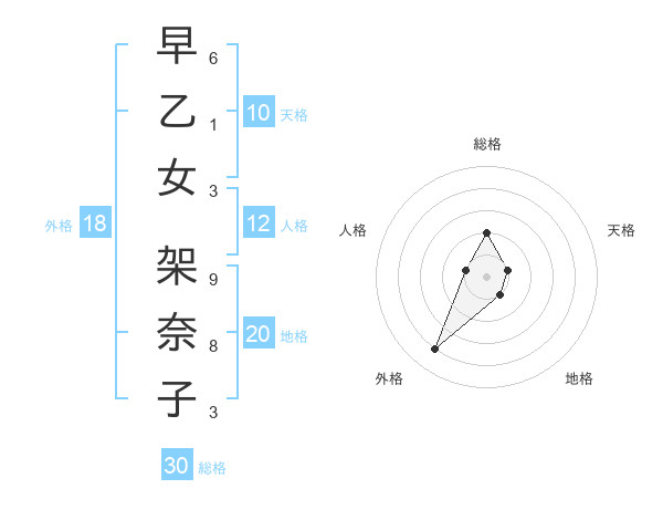 早乙女 架奈子さんを姓名の画数から五運を鑑定