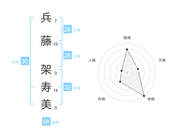 兵藤 架寿美さんの総格は58画の4点!