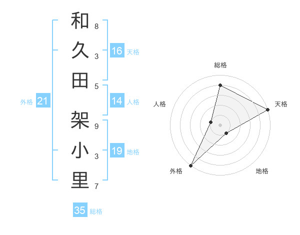 和久田 架小里さんの総格は35画の4点