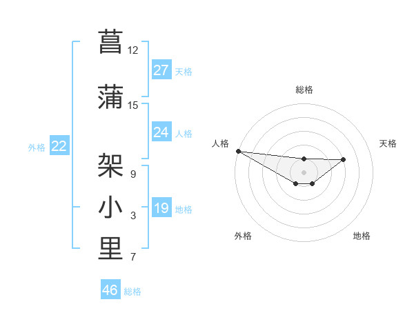 菖蒲 架小里さんを姓名の画数から五運を鑑定