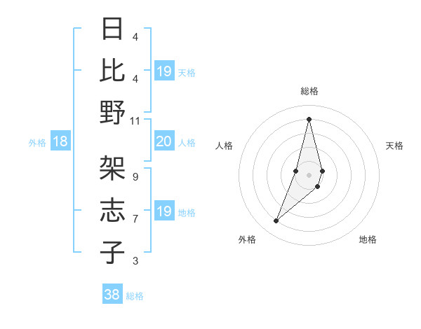 日比野 架志子さんを姓名の画数から五運を鑑定