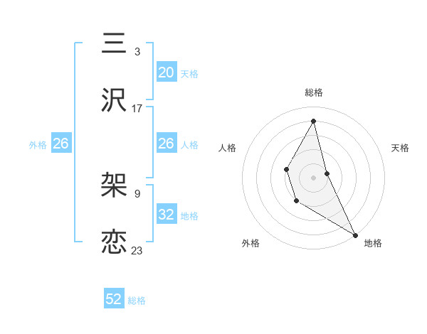 三沢 架恋さんを姓名の画数から五運を鑑定