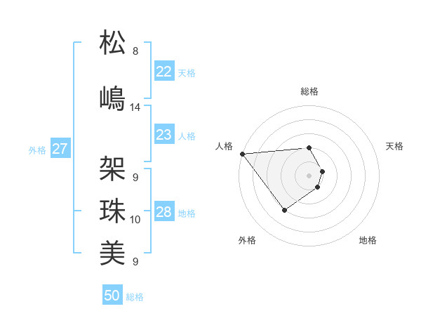 松嶋 架珠美さんを姓名の画数から五運を鑑定