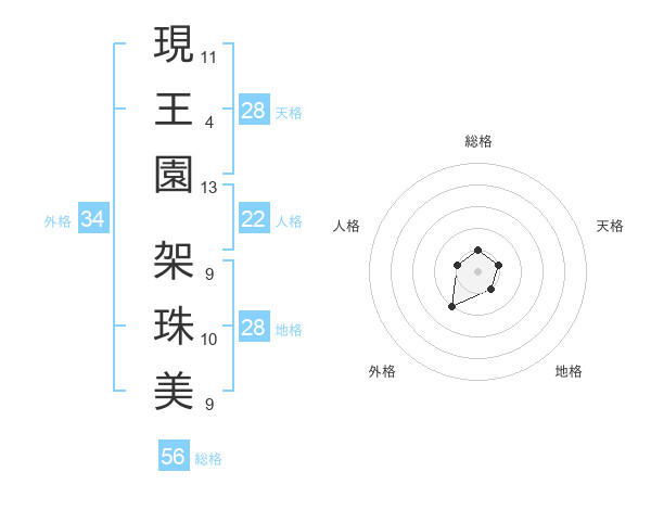 現王園 架珠美さんを姓名の画数から五運を鑑定