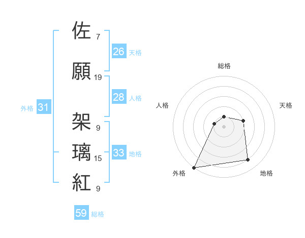 佐願 架璃紅さんの外格は31画の5点!