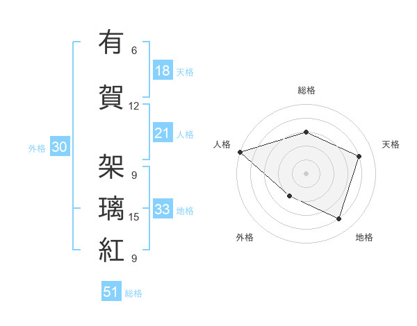 有賀 架璃紅さんの総格は51画の3点!