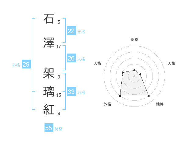 石澤 架璃紅さんの総格は55画の1点!