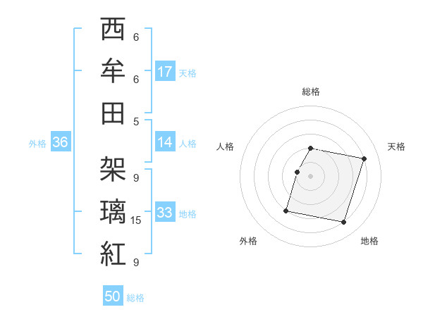 西牟田 架璃紅さんを姓名の画数から五運を鑑定