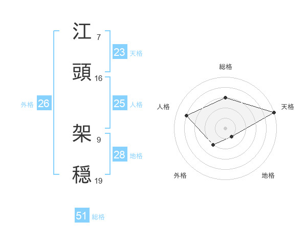 江頭 架穏さんを姓名の画数から五運を鑑定