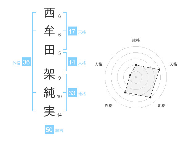 西牟田 架純実さんの総格は50画の2点!