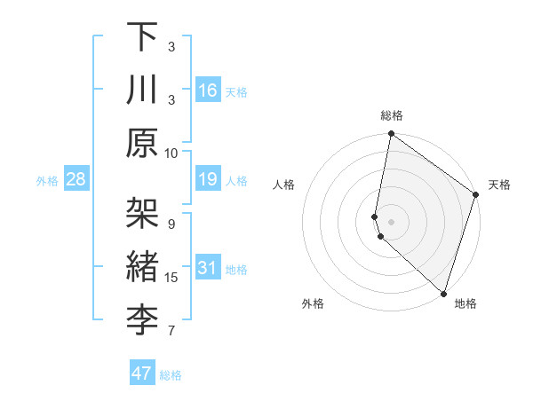 下川原 架緒李さんを姓名の画数から五運を鑑定