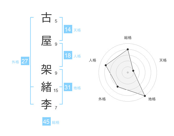 古屋 架緒李さんを姓名の画数から五運を鑑定