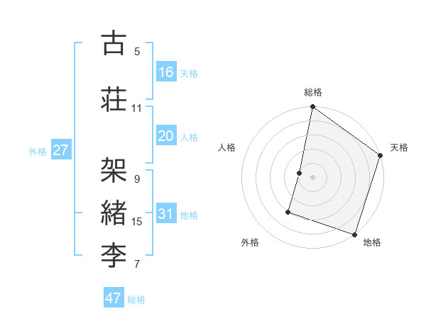 古荘 架緒李さんの総格は47画の5点!