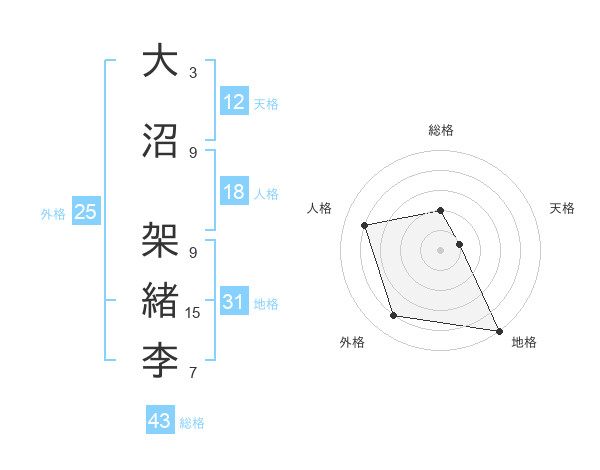 大沼 架緒李さんを姓名の画数から五運を鑑定