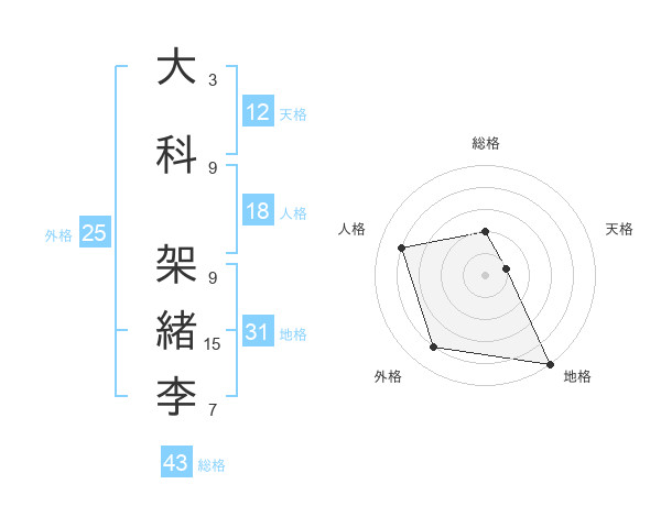 大科 架緒李さんを姓名の画数から五運を鑑定