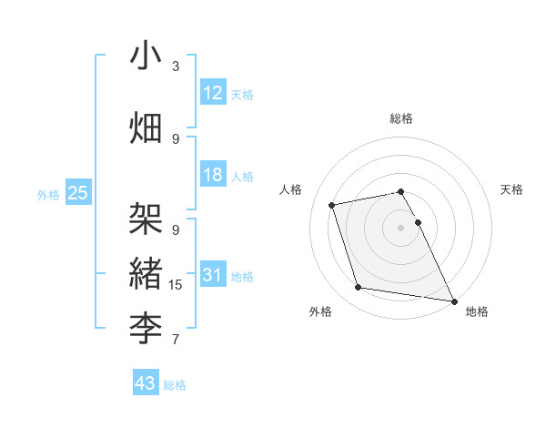 小畑 架緒李さんを姓名の画数から五運を鑑定