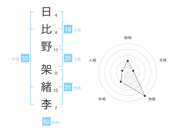 日比野 架緒李さんを姓名の画数から五運を鑑定