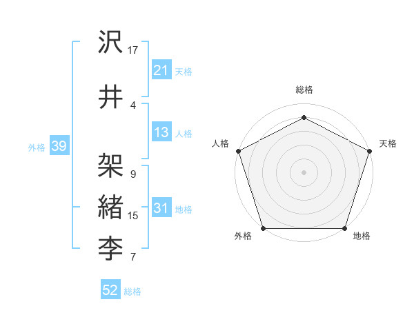 沢井 架緒李さんを姓名の画数から五運を鑑定