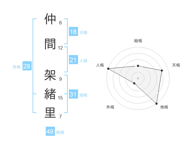 仲間 架緒里さんを姓名の画数から五運を鑑定